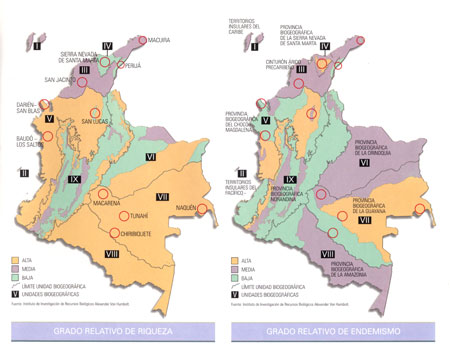 Grados relativos de Riqueza y Endemismos