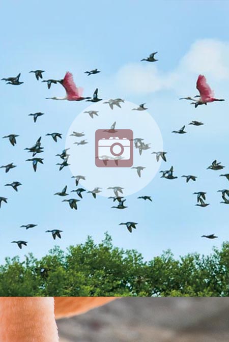 Una de las aves emblemáticas que visita la costa del Caribe colombiano es el flamenco, cuya llamativa coloración rosada se debe a los pigmentos carotenoides de los pequeños crustáceos que constituyen su principal dieta. La forma del pico y la longitud de sus patas son adaptaciones para alimentarse y vivir en un hábitat muy particular y escaso: las lagunas costeras salobres de poca profundidad, donde vadean explorando y filtrando el limo del fondo. Los flamencos no forman en Colombia colonias reproductivas, pero adultos y juveniles visitan recurrentemente las lagunas costeras de La Guajira en la época lluviosa de la segunda mitad del año, provenientes de las zonas de reproducción que aún existen en Aruba, Bonaire y otras islas del sur del Caribe y permanecen allí hasta que, ya avanzada la temporada de sequía, el agua se evapora y sólo quedan unas cuantas charcas de agua muy salada, lo que los obliga a retornar a sus sitios de reproducción. Hasta hace cinco décadas se observaban algunos flamencos en la Ciénaga Grande de Santa Marta, pero la contaminación, la construcción de vías y el aumento de la población humana los ahuyentó definitivamente. Esta especie es muy sensible a las perturbaciones provocadas por el hombre, particularmente al ruido; tanto que, luego de una exhibición militar que tuvo lugar hace un tiempo en la isla de Bonaire, acompañada de salvas de cañón, los flamencos abandonaron durante siete años la colonia reproductiva que allí se mantenía.