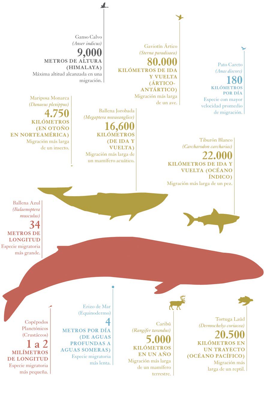 Las migraciones animales ocurren desde hace cientos de miles de años y representan una estrategia de supervivencia exitosa para muchas especies, que a través del tiempo han ido perfeccionando su táctica migratoria mediante complejos procesos de adaptación, que incluyen modificaciones anatómicas, fisiológicas y de comportamiento, sincronización con estímulos ambientales e incluso desarrollo de ingeniosos métodos para evitar la competencia con otras especies. En este largo proceso, soportado muy seguramente por incontables pruebas de ensayo y error, no pocas especies tuvieron que pagar un altísimo costo y en sus intentos por hallar una fórmula para hacer más eficaz o menos ardua su existencia, se extinguieron. Aunque puedan parecer ilógicas, algunas de las tácticas migratorias como la de recorrer distancias muy largas, transitar por rutas en apariencia inconvenientes o elegir destinos disparatados o extraños, han demostrado ser exitosas y por lo tanto, además de merecer nuestra admiración y respeto, son la mayor evidencia del ingenio y de la perfección de la evolución biológica.