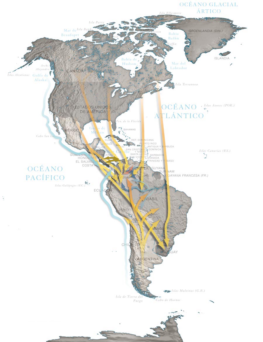 Colombia tiene una inmensa variedad de ecosistemas que sumados a su posición excepcional entre el norte y el sur del continente, convierten a nuestro territorio en la residencia transitoria ideal para una multitud de aves, insectos, peces y mamíferos que huyen de las temperaturas extremas y de la falta de alimento.